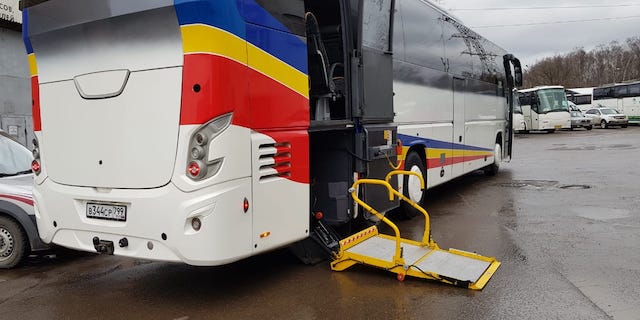 В парке имеются автобусы, оборудованные подъемником для инвалидов-колясочников (гидролифт)
